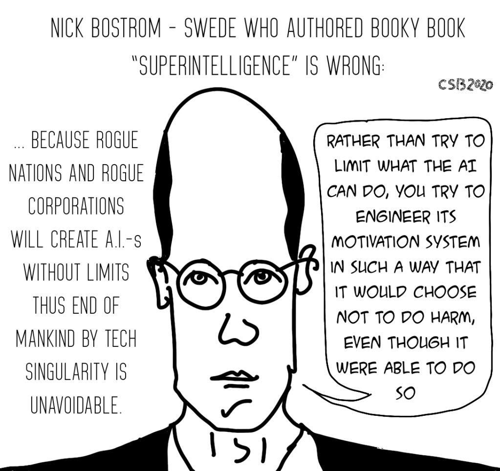 Categories cartoons Nick Bostrom is wrong Post author By CSB Post date July 26, 2020 No Comments on Nick Bostrom is wrong Tags Artificial Intelligence, singularity