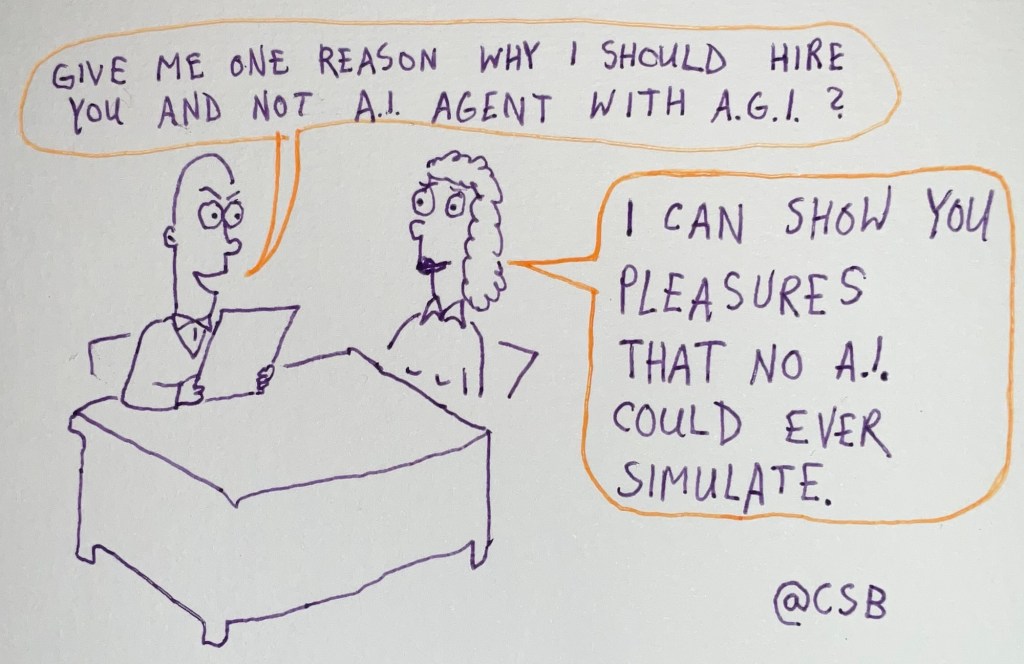 Categories cartoons The Human Edge Post author By CSB Post date February 11, 2025 No Comments on The Human Edge Tags AGI, Artificial Intelligence, job market, relationships